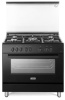 Cucina a gas 5 fuochi - forno elettrico 83 lt. - forno 7 programmi multifunzione ventilato - classe A - grill elettrico - piano acciaio inox - larg. 90 prof. 60 cm. - colore nero
