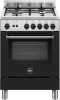 Cucina a gas 4 fuochi - forno a gas 56 lt. - forno 5 programmi ventilato - classe A+ - grill elettrico - piano acciaio inox - larg. 59.5 prof. 60 cm. - colore nero