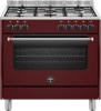 Cucina a gas 5 fuochi - forno elettrico 117 lt. - forno 11 programmi ventilato - classe A - grill elettrico - piano acciaio inox - larg. 89.7 prof. 60 cm. - colore vino