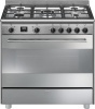 Cucina a gas 5 fuochi - forno elettrico 105 lt. - forno 8 programmi termoventilato - classe A - grill elettrico - piano acciaio satinato - larg. 90 prof. 60 cm. - colore acciaio inox