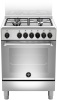 Cucina a gas 4 fuochi - forno elettrico 70 lt. - forno 9 programmi termoventilato - classe A - grill elettrico - piano acciaio inox - larg. 60 prof. 60 cm. - colore acciaio inox