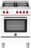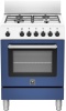 Cucina a gas 4 fuochi - forno a gas 56 lt. - forno 5 programmi ventilato - classe A+ - grill elettrico - piano acciaio inox - larg. 59.5 prof. 60 cm. - colore bianco-blu