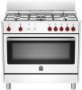 Cucina a gas 5 fuochi - forno a gas 115 lt. - forno 5 programmi ventilato - classe A+ - grill elettrico - piano acciaio inox - larg. 89.7 prof. 60 cm. - colore bianco-blu