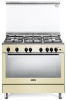 Cucina a gas 5 fuochi - forno a gas 111 lt. - forno 6 programmi ventilato - classe A - grill elettrico - piano acciaio inox - larg. 90 prof. 60 cm. - colore crema