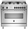 Cucina a gas 5 fuochi - forno a gas 142 lt. - forno 5 programmi ventilato - classe A+ - grill elettrico - piano acciaio inox - larg. 89.7 prof. 60 cm. - colore acciaio inox