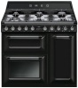 Cucina a gas 6 fuochi - forno elettrico 68 lt. - forno 9 programmi termoventilato - classe A - grill elettrico - piano smaltato - larg. 89.8 prof. 59,8 cm. - colore nero