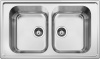 Lavello 2 vasche - vasca in acciaio satinato - larg. 79 cm. - forma rettangolare - installazione semifilo top - colore acciaio inox