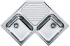 Lavello 2 vasche - vasca in acciaio satinato - ripiano scolatura - larg. 83 cm. - forma angolare - installazione semifilo top - colore acciaio inox