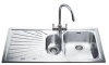 Lavello 1 vasca - vasca in acciaio satinato - ripiano scolatura - larg. 101 cm. - forma rettangolare - installazione sopra top - colore acciaio inox