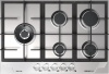 Piano cottura a gas - larg. 74 cm. - 5 fuochi - accensione elettrica fuochi - piano acciaio inox - griglie in ghisa - comandi frontali - colore acciaio inox