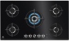 Piano cottura a gas - larg. 74 cm. - 5 fuochi - accensione elettrica fuochi - piano cristallo temperato - griglie in ghisa - comandi frontali - colore nero