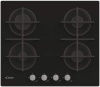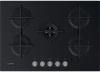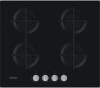 Piano cottura a gas - larg. 59.5 cm. - 4 fuochi - accensione elettrica fuochi - piano vetro temperato - griglie in ghisa - comandi frontali - colore nero