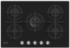 Piano cottura a gas - larg. 74.5 cm. - 5 fuochi - accensione elettrica fuochi - piano vetro temperato - griglie in ghisa - comandi frontali - colore nero