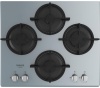 Piano cottura a gas - larg. 59.5 cm. - 4 fuochi - accensione elettrica fuochi - piano vetro temperato - griglie in ghisa - comandi frontali - colore nero