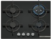 Piano cottura a gas - larg. 59 cm. - 4 fuochi - accensione elettrica fuochi - piano vetro temperato - griglie in ghisa - comandi frontali - colore nero