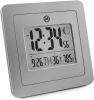 Orologio digitale interno - alimentazione a batteria - display bianco - sveglia - visualizzazione data - termometro - struttura in plastica - colore silver