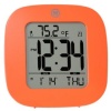 Orologio digitale interno - alimentazione a batteria - display bianco - sveglia - visualizzazione data - termometro - struttura in plastica - colore arancione