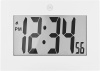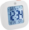 Orologio digitale interno - alimentazione a batteria - display bianco - sveglia - visualizzazione data - termometro - struttura in plastica - colore bianco