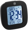 Orologio digitale interno - alimentazione a batteria - display bianco - sveglia - visualizzazione data - termometro - struttura in plastica - colore nero