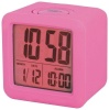 Orologio digitale da tavolo - alimentazione a batteria - sveglia - visualizzazione data - numeri display in nero - struttura in gomma-silicone - colore rosa