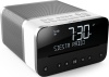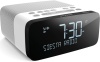 Radiosveglia da tavolo - alimentazione a rete - display lcd bianco - connessione usb - presa usb - radio 20 emittenti memorizzabili - colore bianco-grigio