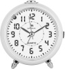 Sveglia analogica da tavolo - alimentazione a batteria - display bianco - funzione snooze - numeri display in nero - peso circa 1000 gr. - colore bianco