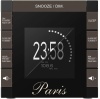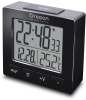 Sveglia digitale da tavolo - altoparlanti integrati - display lcd trasparente - funzione snooze - visualizzazione data - radiocontrollata - termometro - colore nero
