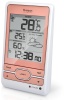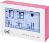 Barometro da tavolo - alimentazione a batteria - display lcd grigio - allarme ghiaccio - rilevazione temperatura (int/est) - radiocontrollata - orologio - colore rosa