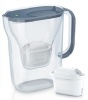 Caraffa filtrante - manico ergonomico - capacità 2,4 lt - capacità acqua filtrata 1,4 lt. - filtro maxtra - indica sostituzione filtro - lavabile in lavastoviglie - peso 0,7 kg. - colore trasparente-bianco